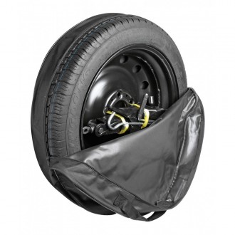 Ruotino di emergenza con crick e chiave svita bulloni per cerchio in acciaio diametro 155/70-17