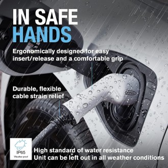 Cavi di ricarica per auto elettriche con connettori tipo 2 (lato veicolo e lato colonnina). Certificati CE, TUV, UKCA. Protezione IP65. Pratica custodia in dotazione. Dati tecnici: corrente di carica per batteria da 90 KW -> 16A fino a 3.6KW / tempo di carica da 0 a 100% -> 14-21 ore / km per ore di carica -> 15-18 m/h / lunghezza cavo ricarica -> 5 metri.