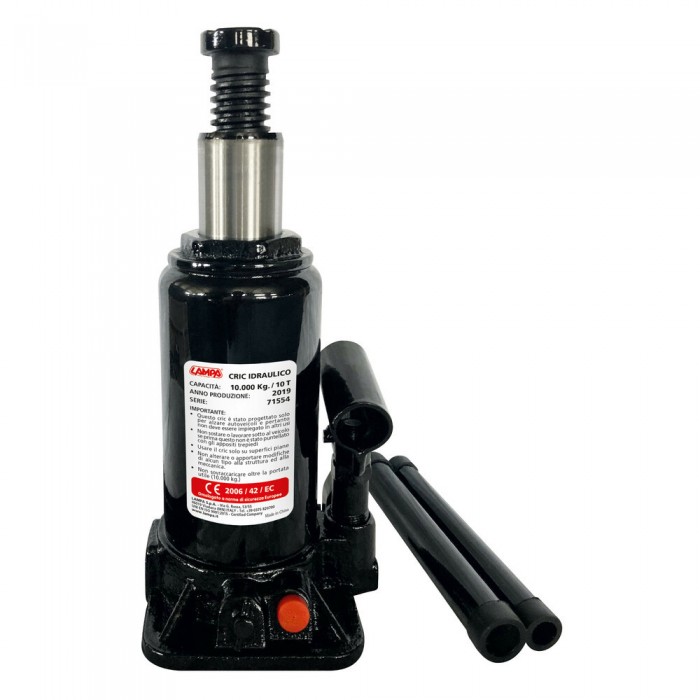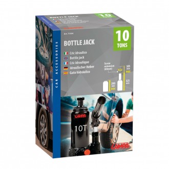 Crick idraulico compatto e potente per un comodo utilizzo ideale per l'uso di applicazioni automobilistiche, edili, industriali e agricole. Include una sella di sollevamento a vite regolabile e custodia di trasporto Certificato TUV-GS. Altezza min. 200 mm Altezza max di sollevamento 385 mm. Portata max 10T