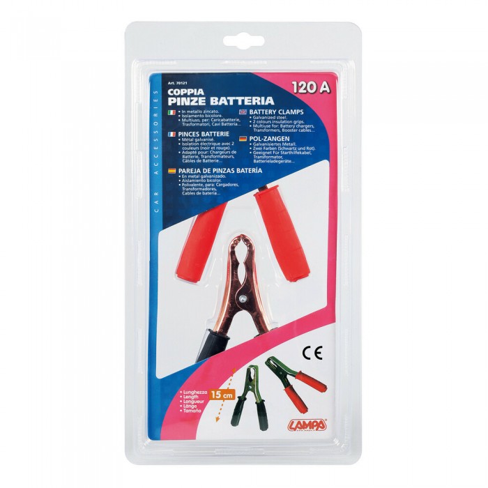 Serie pinze in metallo zincato lunghezza 15cm per cavi batteria 120A.