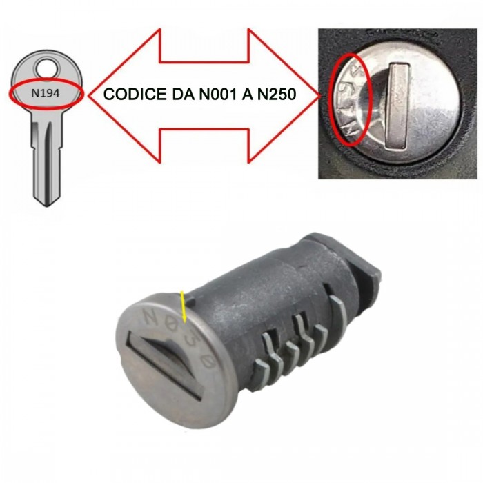 Puoi individuare il codice della chiave leggendo il numero di riferimento stampato sul cilindro della serratura (es. N seguito da un numero a 3 cifre, come N068). Inserendo il codice a tre cifre nella barra di ricerca troverai quella corretta. Set composto da due pezzi.