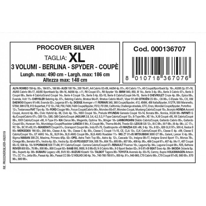 I teli Copriauto sono un'ottima soluzione per proteggere la tua auto dalle condizioni climatiche avverse. In questo modo la tua auto sarà al sicuro anche in presenza di ghiaccio, neve, grandine, umidità, caldo e vento forte. Sottovalutare questi aspetti significa esporre la tua vettura a una rapida usura e, ancor peggio, a malfunzionamenti delle parti meccaniche o elettriche dovute alle varie intemperie appena citate. La soluzione per la salvaguardia della tua vettura non consiste nel dotarti di un qualsiasi telo copriauto, ma ti serve il migliore telo Copriauto. Il Telo Copriauto PROCOVER SILVER è un ottimo prodotto leggero e robusto, antigraffio resistente ai raggi UV adatto a tutte le stagioni, protegge l'auto dallo sporco e dall'invecchiamento precoce provocati da inquinamento ed agenti atmosferici. Semi-impermeabile e traspirante, può essere impiegato anche durante la stagione estiva per proteggere l'abitacolo dal sole (respinge fino al 70% i raggi solari.
