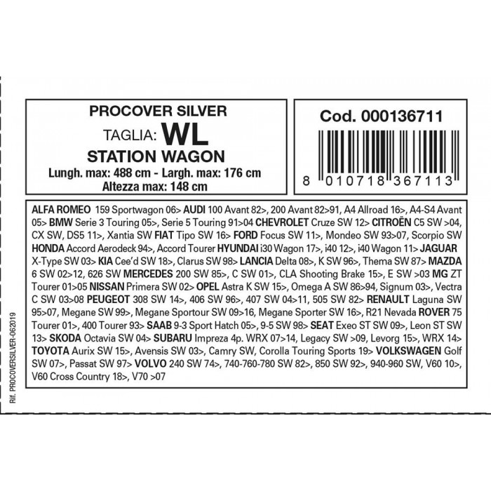 Adatto alle seguenti vetture: Alfa Romeo 159 Sportwagon 06> - Audi 100 Avant 91>, 100/200 Avant >91, A4/S4 Avant 05>08, 08> - BMW Serie 3 Touring 05>12, 12>, Serie 5 Touring 88>95, 96>04 - Chevrolet Cruze S.W. 12> - Citroen C5 S.W. >04, Cx S.W., Ds5 11>, Xantia S.W. - Ford Focus S.W. 11>, Mondeo S.W. >00, 00>07, Scorpio S.W. - Honda Accord Aerodeck 94>, Accord Tourer >07, 08> - Hyundai I40 12>, I40 Wagon 11> - Jaguar X-Type S.W. - Kia Clarus S.W. - Lancia Delta 08>, K S.W., Thema S.W. - Mazda 6 Sw. 02>08, 08>12, 626 S.W. - Mercedes 200 S.W., C S.W. 04>07, 07>11, 11>, E S.W. >96, 96>03 - Mg Zt Tourer - Nissan Primera S.W. 02> - Opel Omega S.W. >94, Signum, Vectra S.W. 03>08 - Peugeot 406 S.W. 96>, 407 S.W. 04>11, 505 S.W. - Renault Laguna Ii S.W. 01>07, Laguna S.W. >00, Megane S.W., Megane Sportour S.W. 09>12, 12>, R21 Nevada - Rover 416 Tourer, 75 Tourer - Saab 9-3 Sport Hatch 05>, 9-5 S.W. - Seat Exeo St S.W. 09> - Skoda Octavia S.W. 05>13, 13> - Subaru Impreza 4P. Wrx 07>, Legacy S.W. >98, 99>09 - Toyota Avensis S.W 03>08, 09>11, 11>, Camry S.W. - Volkswagen Golf V S.W. 07>09, 09>, Golf Vii S.W. 13>, Passat S.W. 96>00, 01>05, 05>10 - Volvo 245 S.W., 740-760 S.W., 850 S.W., 940-960 S.W., V60 10>, V70 >07.