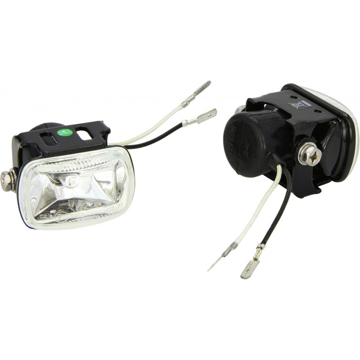 Coppia fari fendinebbia omologati, ideali per il montaggio sotto il paraurti. Scocca in acciaio nera rinforzata in metallo. Lente in vetro bianco resistente agli sbalzi termici. Parabola metallizzata termoformata multisagomata. Completi di lampade alogene R453 H3 12V 55W premontate. Staffe di fissaggio in dotazione. Kit di installazione elettrica non incluso, può essere acquistato separatamente il kit RLFK200. Dimensioni: 63 (L) x 70 (P) x 43,5 (A) mm