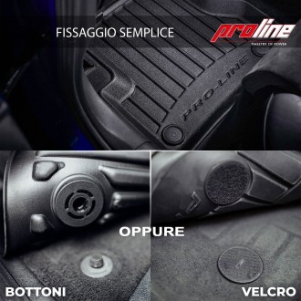 I tappeti ProLine sono personalizzati e su misura, quindi si adatteranno perfettamente agli interni della tua vettura. Grazie all'innovativa tecnologia di scansione 3D, ogni elemento del tappetino Pro Line è stato progettato con precisione per il modello e l'anno specifici dell'auto, il che garantisce una perfetta vestibilità e protezione degli interni. I tappetini ProLine  sono di altissima qualità, realizzati con uno speciale materiale TPE UltraFlex Dual Polymer moderno, durevole e resistente, sono caratterizzati da una resistenza ai danni senza precedenti, pur rimanendo leggeri e flessibili.  I tappetini ProLine sono unici grazie al loro design esclusivo, ultramoderno e alla struttura incomparabile del materiale PowerHalt Unique Surface Technology che conferisce un effetto elegante. Sono rinforzati,  sagomati ed irrigiditi in modo da non deformarsi mai. Il design unico della tecnologia MaxEdge fa sì che i tappetini si adattino perfettamente alle pareti del pianale, per una  perfetta protezione contro lo sporco. I tappetini per auto ProLine hanno i bordi più alti, fino a 7 cm, garantiscono che la sporcizia e l'acqua accumulata all'interno del tappetino non fuoriesca. Grazie a questo la tua auto sarà sempre protetta .
