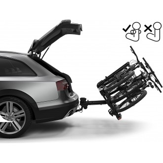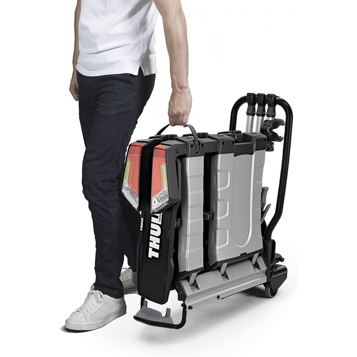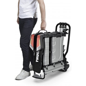 Portabici Thule da gancio traino Thule EasyFold XT F, è un portabici da installare su gancio di traino destinato esclusivamente ad auto con un gancio di traino Fix4Bike. Portabici compatto in grado di trasportare 3 bici di qualsiasi tipo comprese e-bike e mountain bike pesanti. Completamente ripiegabile per agevolare montaggio, trasporto e rimessaggio: una volta piegato, non ingombra più di una valigia normale e può pertanto essere facilmente riposto nel bagagliaio o in casa.