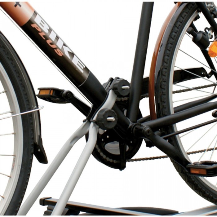 Portabici da tetto universale di elevata sicurezza Biker Plus è un portabiciclette da tetto in acciaio completamente verniciato, universale per biciclette di tipo e dimensioni diverse, la canalina si adatta a qualsiasi tipo di pneumatico, Il fissaggio sulle barre portatutto è garantito da pratici e robusti cavallotti in grado di montare su barre portatutto di larghezza massima 60x50 mm. Completa di confezione di montaggio con istruzioni allegate, il portabici ha un prezzo contenuto ma è qualitativamente molto valido.