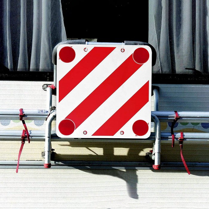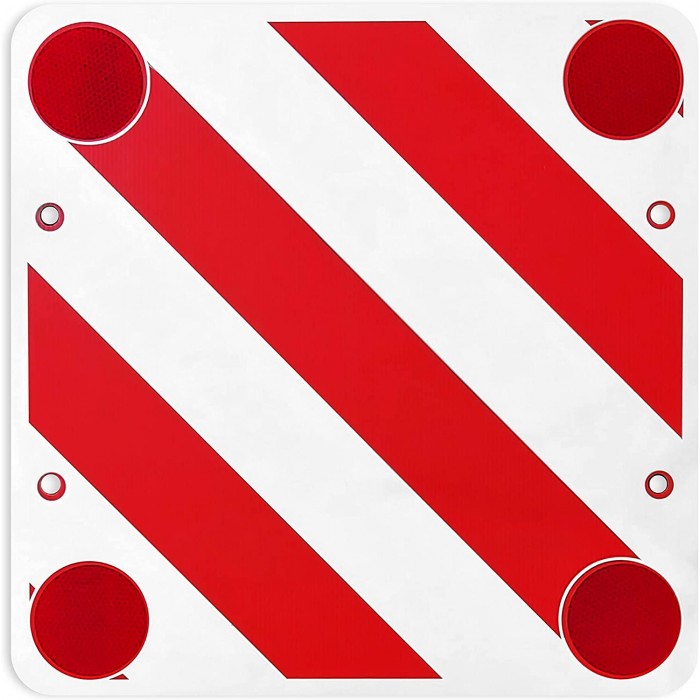 Cartello per carichi sporgenti 50x50 cm con catadiottri e occhielli per il fissaggio. Non omologato