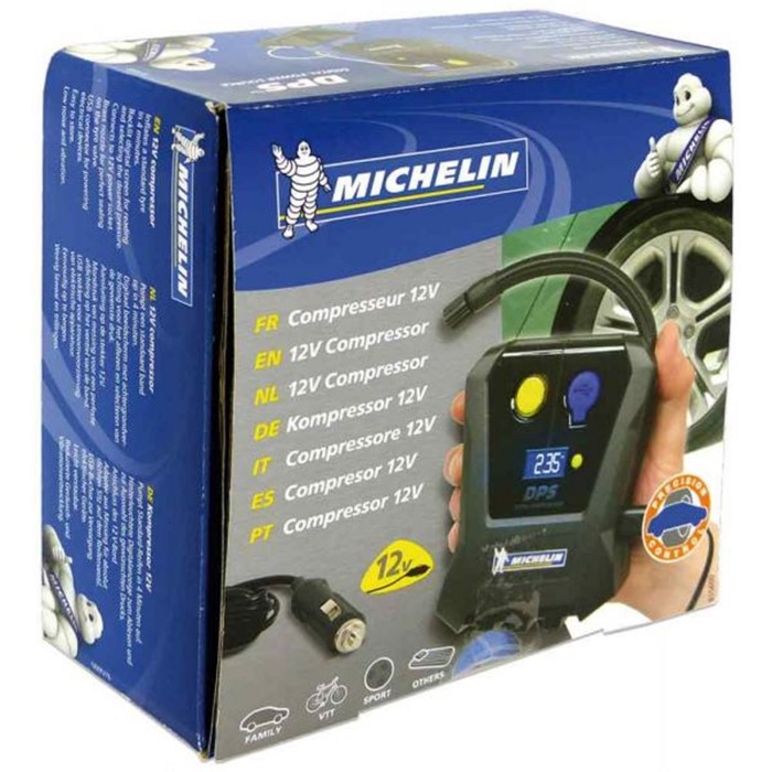 Compressore digitale 12V con selezione programmabile della pressione desiderata (fino a 3.5 bar con precisione 0,05 bar). Provvisto di presa USB, luce led e presa ausiliaria 12V. Tubo flessibile da 60 cm con raccordo in ottone. Nicchia per sistemazione accessori.
