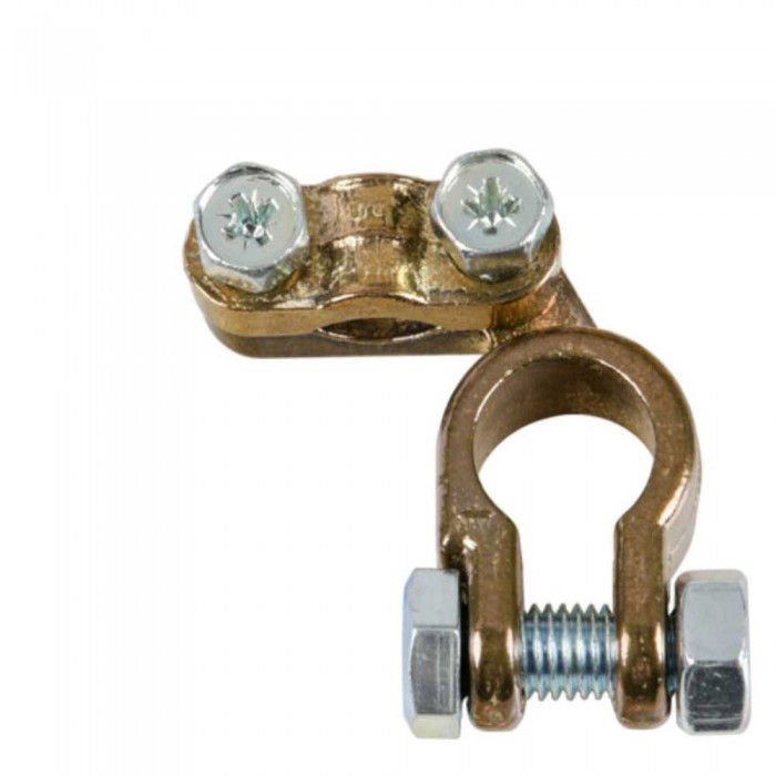 Morsetto batteria rinforzato, idoneo per un utilizzo a 12 o 24V interamente realizzati in ottone, amperaggio massimo in spunto 1000 A. Prevengono la corrosione e garantiscono un’ottima conduttività e riducono al minimo le perdite di tensione e potenza con fissaggio cavo a piastrina. Max cavo Ø 35 mm. Polo negativo.
