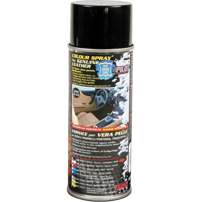 Per rivestimenti interni in pelle(sedili, pannelli portiera, cruscotto…)Di lunga durata, non scolora, asciugatura rapida.Contenuto 400 ml (copertura 1 mq circa).